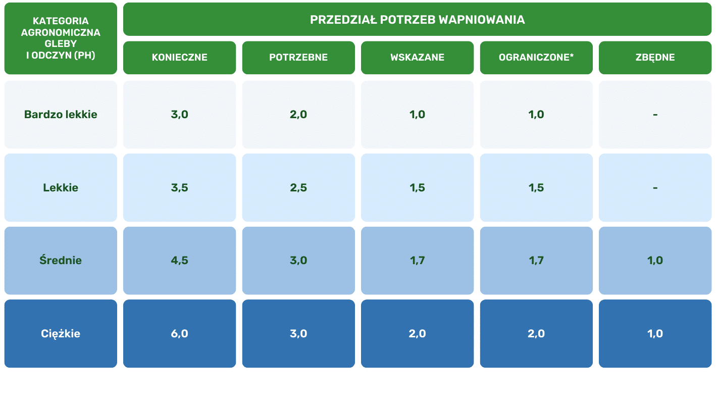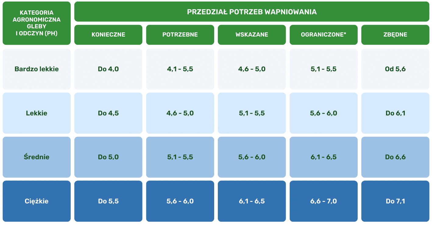 Najlepszym terminem na wapnowanie gleby pod uprawy jest jesień, kiedy zebraliśmy plony. Wapnowanie gleby można przeprowadzać również wiosną. Najlepiej jest jednak wydłużyć okres od wapnowania do wysiewu czy sadzenia roślin. Wapnowanie należy przeprowadzać na podstawie analizy odczynu pH gleby i wymagań upraw.